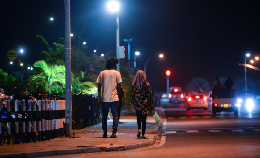 A man and woman walks along a street in Male' city. (Sun File Photo)