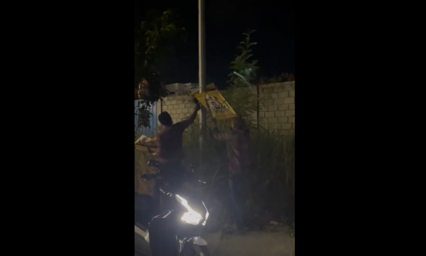 A video shared on X by Dhauru journalist Muzayyin Nazim shows HDC employees removing MDP posters from public areas.