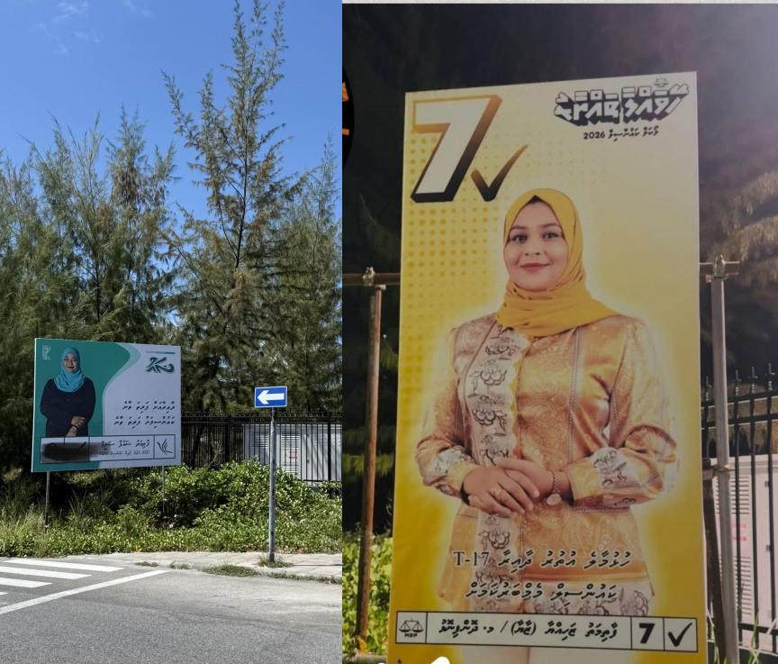 Fathimath Zahiyya (Zaya), the MDP candidate for North Hulhumalé, claimed that her poster had been removed and replaced with one promoting a candidate from the ruling People’s National Congress (PNC).